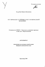 Автореферат диссертации по теме "Регулирование устойчивого роста национальной экономики"