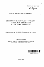Рентные основы трансформации земельных отношений в сельском хозяйстве тема диссертации по экономике, полный текст автореферата