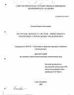 Ресурсные модели в системе эффективного управления строительным предприятием тема диссертации по экономике, полный текст автореферата
