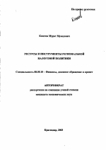 Ресурсы и инструменты региональной налоговой политики тема диссертации по экономике, полный текст автореферата