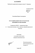 Рост национального богатства России: возможности обеспечения тема диссертации по экономике, полный текст автореферата