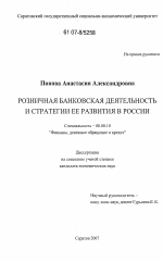 Розничная банковская деятельность и стратегия ее развития в России тема диссертации по экономике, полный текст автореферата