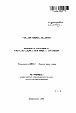 Рыночные императивы системы социальной защиты населения. тема диссертации по экономике, полный текст автореферата