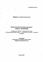 Рынок интелектуальных ресурсов: теория и организация тема диссертации по экономике, полный текст автореферата