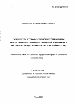 Рынок труда в городах с моноиндустриальным типом развития: особенности функционирования и регулирования тема диссертации по экономике, полный текст автореферата