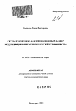 Сетевая экономика как инновационный фактор модернизации современного российского общества тема диссертации по экономике, полный текст автореферата