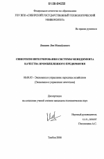 Синергизм интегрирования системы менеджмента качества промышленного предприятия тема диссертации по экономике, полный текст автореферата