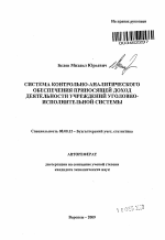 Автореферат диссертации по теме "Система контрольно-аналитического обеспечения приносящей доход деятельности учреждений уголовно-испонительной системы"