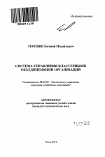 Система управления кластерными объединениями организаций тема диссертации по экономике, полный текст автореферата