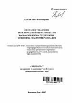 Системное управление трансформацией бизнес-процессов на промышленном предприятии тема диссертации по экономике, полный текст автореферата