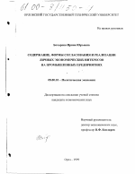 Содержание, формы согласования и реализации личных экономических интересов на промышленных предприятиях тема диссертации по экономике, полный текст автореферата