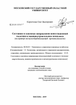 Состояние и основные направления инвестиционной политики в машиностроительном комплексе тема диссертации по экономике, полный текст автореферата