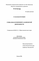 Диссертация: введение по экономике, на тему "Социальная компонента банковской деятельности"
