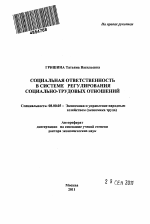 Социальная ответственность в системе регулирования социально-трудовых отношений тема диссертации по экономике, полный текст автореферата
