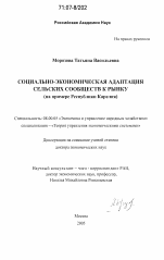 Социально-экономическая адаптация сельских сообществ к рынку тема диссертации по экономике, полный текст автореферата