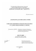 Социально-экономическая безопасность региона в условиях инновационного развития тема диссертации по экономике, полный текст автореферата