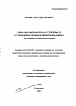 Автореферат диссертации по теме "Социально-экономическая устойчивость регионального производственного комплекса"