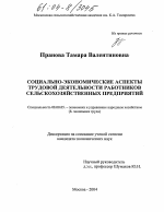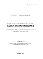 Социально-экономические аспекты трудовой деятельности работников сельскохозяйственных предприятий тема диссертации по экономике, полный текст автореферата