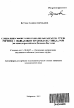 Социально-экономические фильтры рынка труда региона с убывающим трудовым потенциалом тема диссертации по экономике, полный текст автореферата
