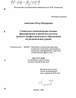 Социально-экономические основы формирования и развития системы среднего профессионального образования на региональном уровне тема диссертации по экономике, полный текст автореферата