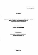 Социально-экономическое развитие западных регионов как фактор общего экономического роста Китайской Народной Республики тема диссертации по экономике, полный текст автореферата