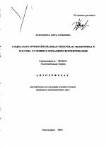 Автореферат диссертации по теме "Социально-ориентированная рыночная экономика в России: условия и механизм формирования"