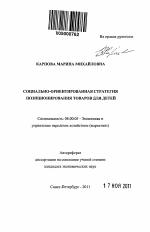 Социально-ориентированная стратегия позиционирования товаров для детей тема диссертации по экономике, полный текст автореферата