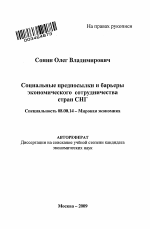 Социальные предпосыки и барьеры экономического сотрудничества стран СНГ тема диссертации по экономике, полный текст автореферата