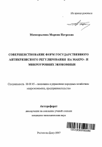 Совершенствование форм государственного антикризисного регулирования на макро- и микроуровнях экономики тема диссертации по экономике, полный текст автореферата