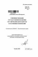 Автореферат диссертации по теме "Совершенствование государственной политики регулирования деятельности естественных монополий"