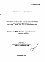 Совершенствование информационного обеспечения маркетинговой деятельности российских телекоммуникационных компаний тема диссертации по экономике, полный текст автореферата