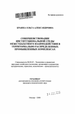 Совершенствование институциональной среды межсубъектного взаимодействия в территориально распределенных промышленных комплексах тема диссертации по экономике, полный текст автореферата
