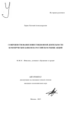 Совершенствование инвестиционной деятельности коммерческих банков на российском рынке акций тема диссертации по экономике, полный текст автореферата