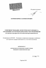 Совершенствование логистического процесса управления закупочной деятельностью предприятий тема диссертации по экономике, полный текст автореферата