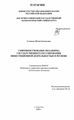 СОВЕРШЕНСТВОВАНИЕ МЕХАНИЗМА ГОСУДАРСТВЕННОГО РЕГУЛИРОВАНИЯ ИНВЕСТИЦИОННОЙ ДЕЯТЕЛЬНОСТЬЮ В РЕГИОНЕ