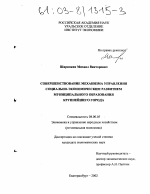Совершенствование механизма управления социально-экономическим развитием муниципального образования крупнейшего города тема диссертации по экономике, полный текст автореферата