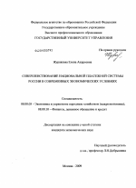 Совершенствование национальной платежной системы России в современных экономических условиях тема диссертации по экономике, полный текст автореферата