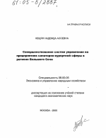 Совершенствование систем управления на предприятиях санаторно-курортной сферы в регионе Большого Сочи тема диссертации по экономике, полный текст автореферата