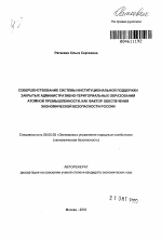 Автореферат диссертации по теме "Совершенствование системы институциональной поддержки закрытых административно-территориальных образований атомной промышленности, как фактор обеспечения экономической безопасности России"