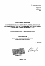 Совершенствование системы распределительных отношений как фактор повышения благосостояния населения в современной России тема диссертации по экономике, полный текст автореферата