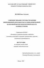 Совершенствование системы управления инновационной деятельностью в специализированной наукоемкой высокотехнологичной области машиностроения тема диссертации по экономике, полный текст автореферата
