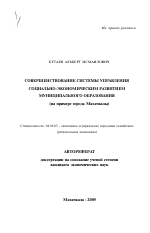 СОВЕРШЕНСТВОВАНИЕ СИСТЕМЫ УПРАВЛЕНИЯ СОЦИАЛЬНО-ЭКОНОМИЧЕСКИМ РАЗВИТИЕМ МУНИЦИПАЛЬНОГО ОБРАЗОВАНИЯ (на примере города Махачкалы)