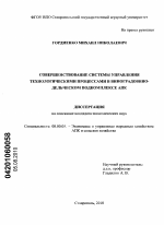 Совершенствование системы управления технологическими процессами в виноградовинодельческом подкомплексе АПК тема диссертации по экономике, полный текст автореферата