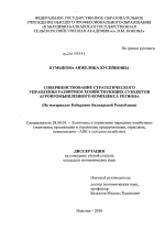 Совершенствование стратегического управления развитием хозяйствующих субъектов агропромышленного комплекса региона тема диссертации по экономике, полный текст автореферата