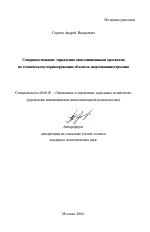 Совершенствование управления инвестиционными проектами по техническому перевооружению объектов энергомашиностроения тема диссертации по экономике, полный текст автореферата