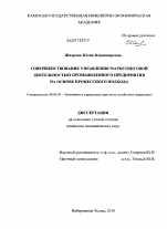 Совершенствование управления маркетинговой деятельностью промышленного предприятия на основе процессного подхода тема диссертации по экономике, полный текст автореферата
