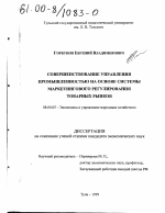 Совершенствование управления промышленностью на основе системы маркетингового регулирования товарных рынков тема диссертации по экономике, полный текст автореферата