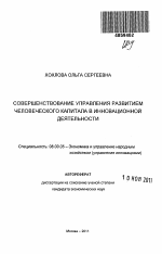 Совершенствование управления развитием человеческого капитала в инновационной деятельности тема диссертации по экономике, полный текст автореферата