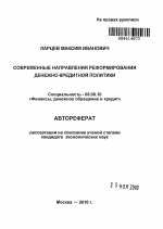 Современные направления реформирования денежно-кредитной политики тема диссертации по экономике, полный текст автореферата
