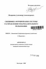 Специфика формирования системы распределения товаров длительного пользования тема диссертации по экономике, полный текст автореферата